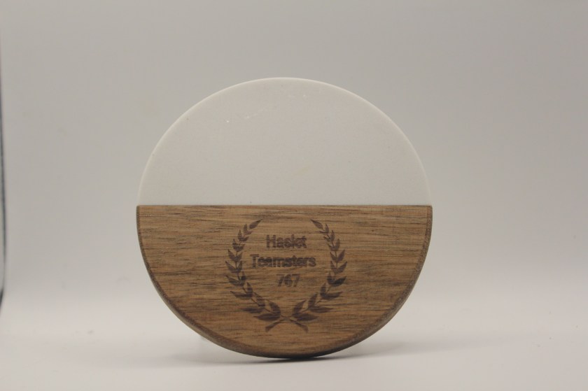 4 item groomsmen gift set with round or square slate coaster, round or square wooden and ivory coaster, shot glass, flask and wooden square or long handle bottle opener $30